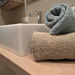 Genießen Sie den Komfort eines Badezimmers im Apartment, das mit einem Haartrockner und Badelaken ausgestattet ist. Außerdem findet man hier eine getrennte Toilette und eine Dusche.